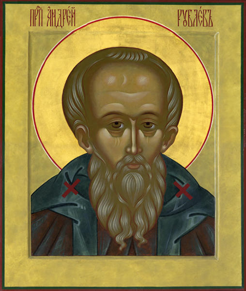 О предивный иконописче преподобне отче Андрее! Услыши моления нас, грешных, с верою, надеждою и любовию взывающих тебе, и буди предстателем нашим пред Святою Троицею. Творивый благодатно в храмех Божиих, помози и нам созидати храмы во славу Божию. Постигнув тайны красоты истинныя, озари нас познанием красоты богослужения нетленныя. Исцеляяй души взиранием на иконы твоя, даруй нам и мощей твоих цельбу. Послуживый единению верных, исходатай и нам единым сердцем и едины устны восхвалити утишающаго розни мира сего в Троице славимаго Бога, Отца и Сына и Святаго Духа во веки веков. Аминь.