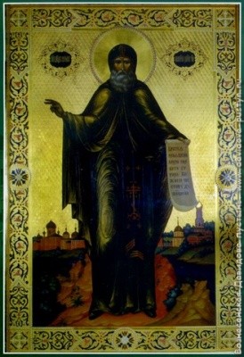Но́вым подвиго́м духо́вным вдал еси́ себе́, досточу́дне о́тче, в пу́стыни уедине́нно пребыва́я в моли́твах, в поще́ниих и труде́х непреста́нных, е́же ви́дя Всеви́дец Госпо́дь, собра́ к тебе́ и́ноков пустыннолюби́вых, и́же хотя́ху с тобо́ю жи́ти, и во спасе́ние назида́тися: и та́ко оби́тель святу́ю устро́ил еси́, я́ко крин в пусты́ни процве́тшую духо́вно, иде́же до днесь прославля́ется и́мя твое́ си́ми достодо́лжными похвалы́: