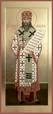 Священномученик Евгений, митрополит Нижегородский (бывш. Приамурский и Благовещенский) (в миру Семён Алексеевич Зернов) родился 18 января 1877 года в Московской губернии, в семье диакона. В 1898 году Семён закончил Московскую Духовную семинарию и поступил в Московскую Духовную Академию. В 1900 году он принимает постриг в монашество с именем Евгений, а 1902 году рукоположение в иеромонаха. В том же году отец Евгений после окончания Духовной Академии назначается на место преподавателя сектоведения Черниговской Духовной семинарии. С 1904 года он — инспектор этой семинарии, а с 1906 года — ректор Иркутской Духовной семинарии в сане архимандрита. В то время в семинарии царило крайнее раздражение воспитанников против своего начальства. Отец Евгений сумел привести в порядок расстроенное смутой 1905 года учебное заведение, действуя без всякого применения репрессивных мер и заслужив общее доверие и любовь. Он имел замечательный дар проповедника, поэтому проводимые им внебогослужебные собеседования по воскресным дням в семинарском храме охотно посещали и учащиеся, и интеллигенция, и народ. В 1909 году отец Евгений являлся членом комиссии по освидетельствованию честных останков святого епископа Иркутского Софрония (Кристалевского). 1910 году отец Евгений сделал доклад о постановке миссионерских предметов в семинариях на Иркутском миссионерском съезде; все положения, высказанные в этом докладе, были единогласно приняты. В 1913 году состоялась хиротония архимандрита Евгения в епископа Киренского, викария Иркутской епархии. В 1914 году Владыка назначается на Приамурскую и Благовещенскую кафедру. Святитель являлся членом Священного Собора Русской Православной Церкви 1917-1918 годов. В 1923 году после всенощной, накануне праздника Успения Пресвятой Богородицы, Владыка ночью был арестован и заключён сначала в тюрьму города Благовещенска, затем вывезен в город Читу, а оттуда в Москву. На защиту своего архипастыря встал весь город, чекисты вынуждены были вызвать пожарную команду, которая, обливая толпу водой, кое-как рассеяла её. Даже сектанты пришли защитить Владыку. Все они глубоко почитали Святителя за миролюбие и правду. Пока Святитель содержался в тюрьме Благовещенска, по городу ежедневно разъезжала телега с надписью: «В тюрьму для епископа хлеб». Пищи набиралось такое количество, что Владыка кормил всех содержавшихся с ним заключённых. После освобождения в том же году святейший Патриарх Тихон возводит Святителя в сан архиепископа, а в 1924 году он включается в состав членов Священного Синода при Святейшем Патриархе Тихоне. В 1924 году Святитель арестовывается вновь и приговаривается к трём годам концлагеря с последующей высылкой на три года. До 1927 года Владыка находился в заключении в Соловецком лагере особого назначения. Он был признан старшим среди епископов и остался им по общему согласию епископов даже после того, как туда прибыли и более старшие по рукоположению. В июле 1926 года он принимал участие в составлении «Соловецкого послания» (обращения к правительству С.С.С.Р. православных епископов). Дух документа преисполнен непоколебимой твёрдости во всём, что касается собственно свободы церковной жизни, совершенно чужд и малой тени соглашательства, безбоязнен в свидетельстве правды и свободен в своём мнении среди уз. В документе изложены факты го