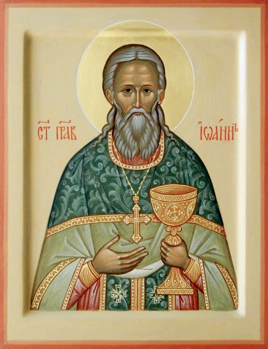 Возсия́л еси́ житие́м твои́м в Це́ркви Правосла́вней па́че сия́ния се́вернаго, блаже́нне Иоа́нне, путь пра́вый лю́дем указу́я. Те́мже моли́ Го́спода Сил, да любо́вь свята́я утверди́тся в сердца́х на́ших, да ни скорбь, ни теснота́, ни смерть, ни бла́га ми́ра сего́ возмо́гут разлучи́ти нас от любве́ Бо́жия, благода́рне тебе́ вопию́щих: