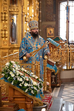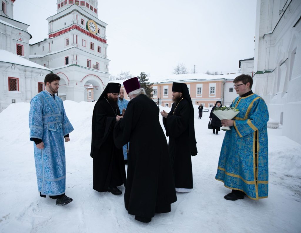 После богослужения владыку Матфея приветствовал протоиерей Владимир Чувикин. От лица всех клириков, учащихся Перервинской духовной семинарии и прихожан настоятель преподнес в дар Его Высокопреосвященству Иверскую икону Божией Матери. Архиерей поблагодарил протоиерея Владимира Чувикина с братией за труды, поздравил верующих с престольным праздником и обратился к ним со словом назидания.