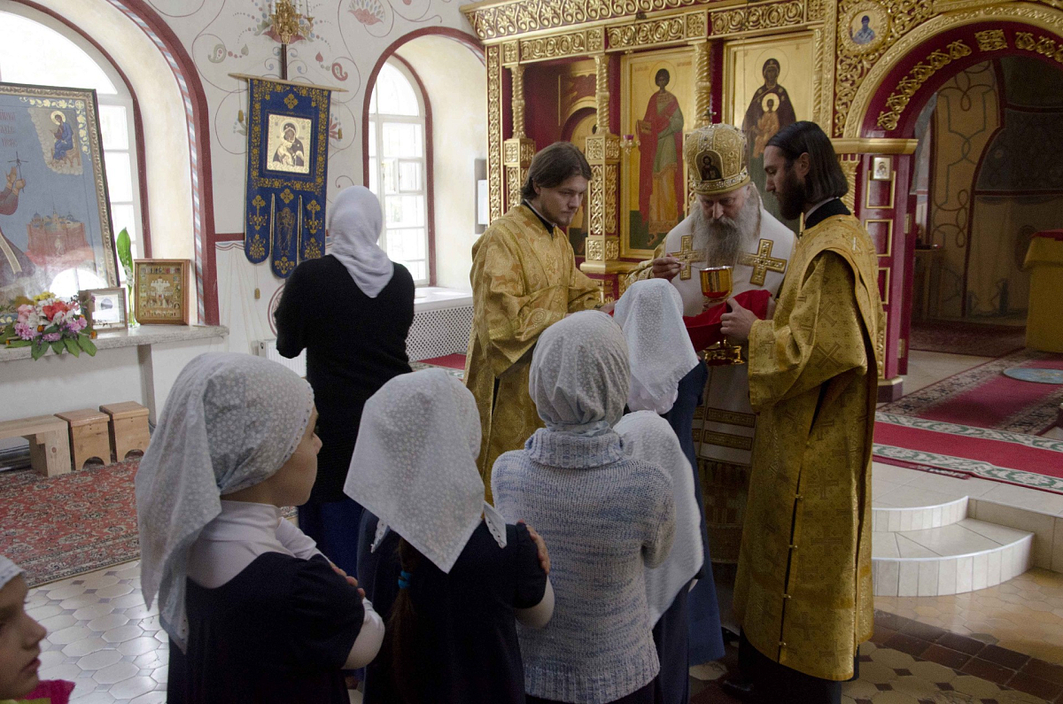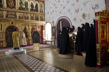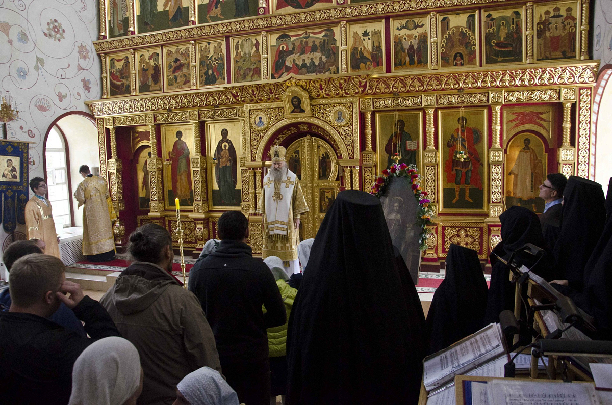 За богослужением молились: настоятельница монастыря игумения Антония (Минина) с сестрами; монахиня Неонилла (Фролова), старшая сестра сестричества Патриаршего Подворья при храме Свт. Николая Чудотворца в с. Шостье Рязанской области; учителя и воспитанницы Александровской гимназии при монастыре.