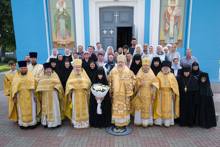 Высокопреосвященнейшему владыке сослужили секретарь Гомельской епархии протоиерей Георгий Алампиев, духовенство обители и епархии.
