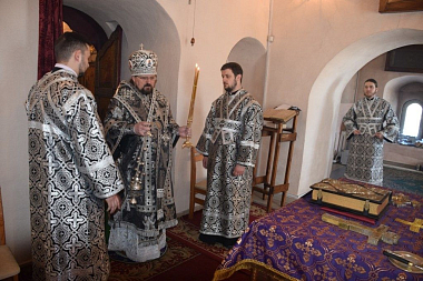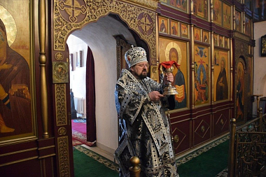 Его Преосвященству сослужил клирик монастыря протоиерей Николай Цветков.