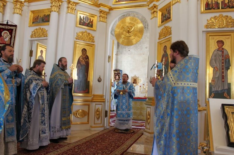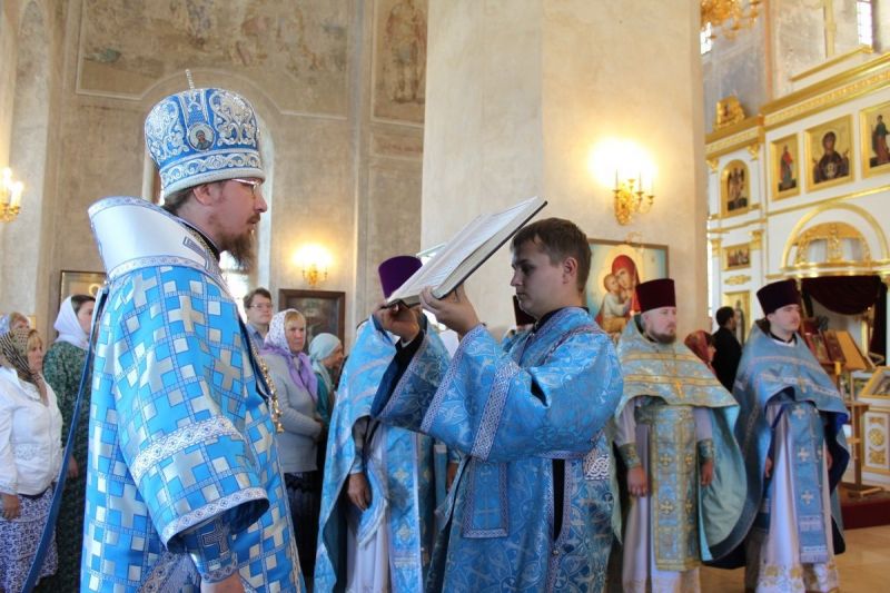 Его Преосвященству сослужили: и.о настоятеля Николо-Чернеевского мужского монастыря архимандрит Феодосий (Иванов), ректор Тульской духовной семинарии игумен Евфимий (Моисеев), клирик Успенского монастыря п. Выша игумен Пимен (Баханов), благочинный Шацкого округа игумен Серафим (Сергеев), благочинный Путятинского округа игумен Феодорит (Долгов), настоятель Троицкого храма с. Польное-Ялтуново протоиерей Филипп Квасный, настоятель Архангельского храма с. Желанного протоиерей Николай Иванов, настоятель Никольского храма с. Темешева протоиерей Валерий Грибов, настоятель Казанского храма с. Лесное-Конобеево протоиерей Георгий Коняев, настоятель Никольского храма г. Шацка протоиерей Андрей Кондаков, клирик Никольского храма г. Ряжска иеромонах Антоний (Лаус), настоятель Никольского храма с. Борки иерей Сергий Скрипко, клирик Успенского женского монастыря иерей Иоанн Крючков, клирик Христорождественского храма г. Ряжска диакон Валентин Мишаков, клирик Сретенского кафедрального собора г. Скопина диакон Александр Скворцов, насельник Свято-Духова мужского монастыря г. Скопина иеродиакон Тихон (Дыда).