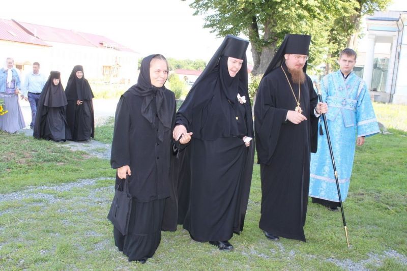 В завершение Преосвященный владыка поздравил настоятельницу монастыря игумению Веру (Ровчан) с 60-летним юбилеем и преподнес ей букет цветов и памятный подарок – икону Пресвятой Богородицы.