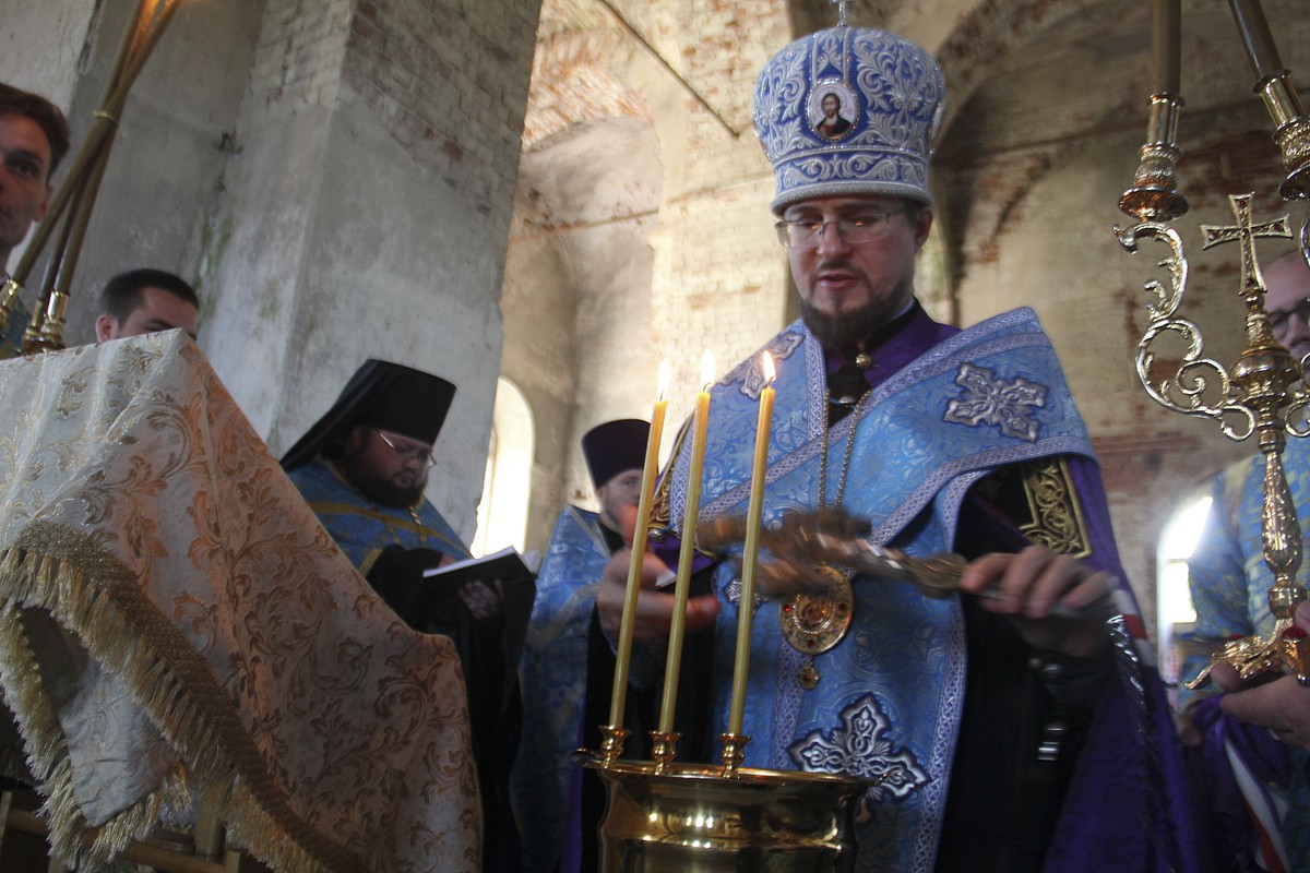 Его Преосвященству сослужили клирики Череповецкой епархии: протоиерей Константин Лобанов, игумен Иов (Чернышев), иеромонах Марк (Шляхтин), иереи Сергий Бондарь, Михаил Селиверстов и Сергий Щербаков.