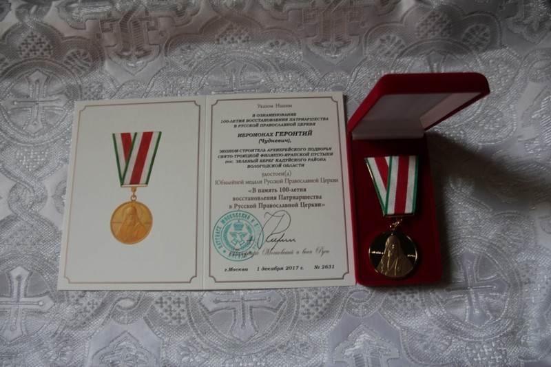 За труды во славу Божию и на благо Церкви эконом-строитель Филиппо-Ирапского мужского монастыря иеромонах Геронтий (Чудневич) был удостоен медали «В память 100-летия восстановления Патриаршества в Русской Православной Церкви». Владыка Флавиан вручил Патриаршую награду и поблагодарил иеромонаха Геронтия.