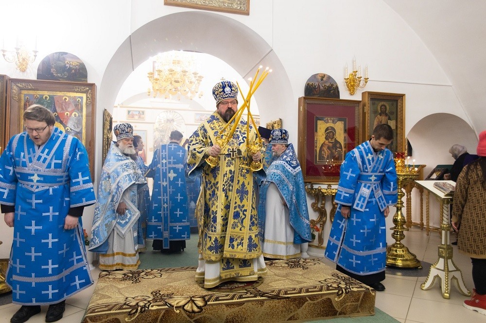 Его Преосвященству сослужили протоиерей Валерий Бунтеев, протоиерей Виталий Шастин, иерей Димитрий Дементьев, иерей Николай Недялко, иерей Георгий Омельченко, протодиакон Сергий Мальцев, диакон Сергий Бахтин, диакон Серафим Степанов.