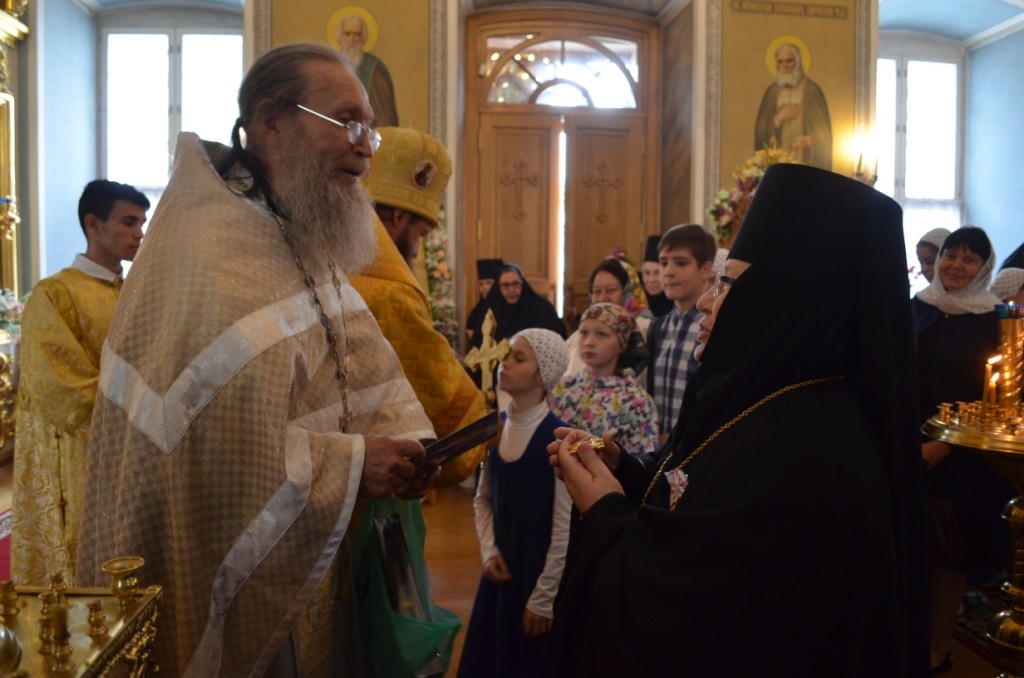 На малом входе епископ Матфей вручил игумении Ольге орден Русской Православной Церкви преподобной Евфросинии, великой княгини Московской, третьей степени. Этой высокой награды игумения Ольга удостоена указом Святейшего Патриарха Московского и всея Руси Кирилла во внимание к усердным трудам на благо Святой Церкви и в связи с 70-летием со дня рождения.
