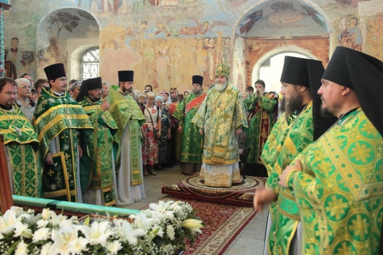 Его Преосвященству сослужили настоятель обители игумен Антоний (Гутник), насельники монастыря иеромонахи Киприан (Галкин), Николай (Бестужев), Николай (Бойко) и Кирилл (Шведов), а также иерей Владимир Бонько.