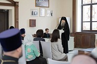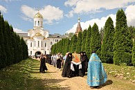 У Святых врат Преосвященного владыку Сергия встречал настоятель Свято-Владимирского мужского монастыря на истоке Днепра игумен Амвросий (Федукович).