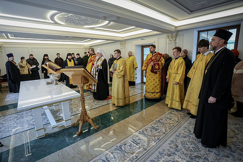 За богослужением молились: настоятель мужского монастыря иконы Пресвятой Богородицы «Всех скорбящих Радость» игумен Кронид (Лысенко); секретарь епархиального управления, и. о. благочинного III Ставропольского округа иеромонах Гавриил (Ольховик); благочинный Михайловского округа протоиерей Игорь Подоситников; благочинный I Ставропольского округа протоиерей Александр Гомзяк, старшая сестра монахиня Панкратия и будущие насельницы женской обители.