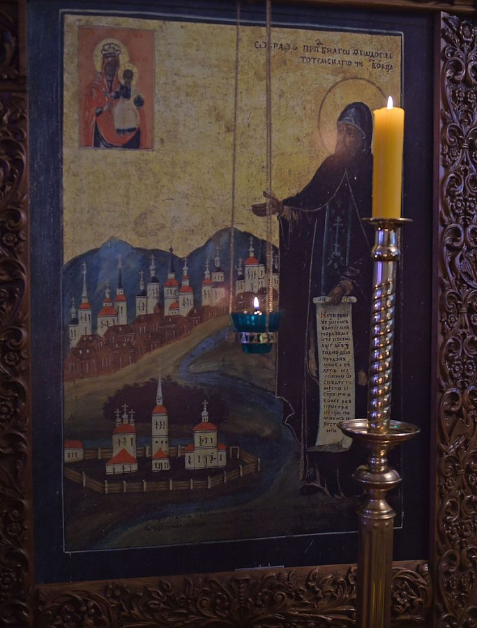 – Сегодня нами воспоминается Суморинская-Тотемская икона Божией Матери. Пречистая Дева Мария, Честнейшая Херувим и Славнейшая без сравнения Серафим, до сих пор не оставляет мир в Своем уповании. До сих пор Она является нам помощницей. Многочисленные явленные иконы Её Пресвятого Образа стали живыми и видимыми символами того, что Пречистая Дева Мария промышляет об этом мире. И это промышление было явлено преподобному Феодосию, когда он с этой иконой шествовал, перед ней молился, перед ней и умирал… И пусть до нас эта чудотворная икона не дошла, мы можем молиться перед ее списком. Засим и возблагодарим Бога! После Литургии был отслужен молебен с акафистом преподобному Феодосию, прочитаны тропарь, кондак и величание святому.