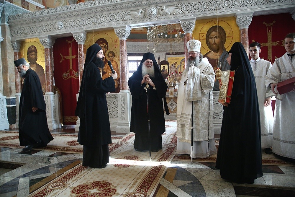 В этот день вместе с владыкой митрополитом святую обитель посетил архимандрит Ефрем, игумен Ватопедской обители на Святой Горе Афон в Греции.