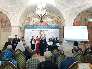 Награждение лауреатов XIV конкурса «Просвещение через книгу», организованного Издательским Советом Русской Православной Церкви, проходило 31 октября 2019 года в Сергиевском зале Храма Христа Спасителя в Москве.