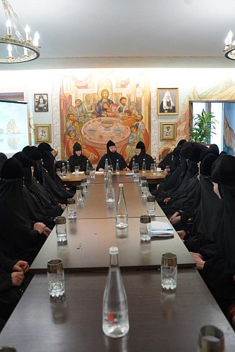 Круглый стол был приурочен к собранию игумений и настоятельниц женских монастырей – бывших сестер Никольского Черноостровского монастыря, собравшихся на XXXIII Международные Рождественские образовательные чтения в Москве. По окончании монашеской секции сестры-настоятельницы посетили Малоярославецкую обитель, чтобы поделиться своими впечатлениями и обсудить актуальные проблемы монашеской жизни в своих монастырях.