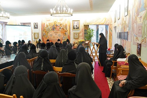 Обзорный доклад о выступлениях заседаний направления Рождественских чтений «Древние монашеские традиции в условиях современности» сделала игумения Феодосия (Бессонова). Особое внимание игумения Феодосия уделила вопросу о подготовке проекта документа «О неисходном пребывании монашествующих в обители своего пострижения и о принятии в монастырь братий/сестер, уже имеющих постриг», разработанного Комиссией Межсоборного присутствия по вопросам организации жизни монастырей и монашества совместно с Синодальным отделом по монастырям и монашеству. Рассказ о подготовке данного документа вызвал оживленное обсуждение, что обусловлено его актуальностью и канонической неопределенностью в данное время.