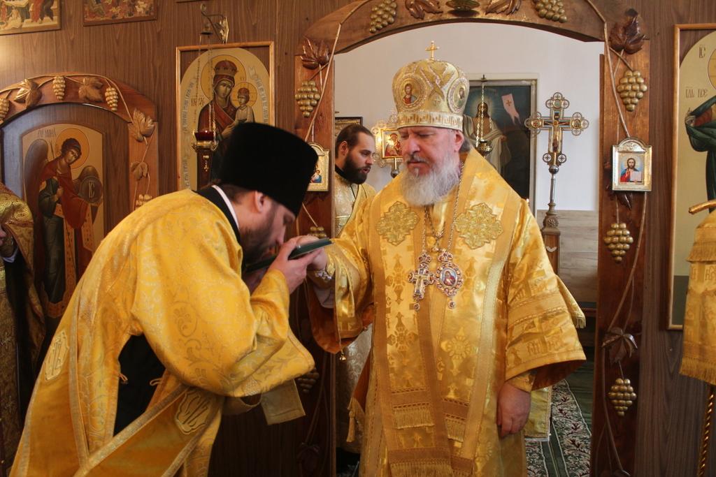 Далее владыка Александр поздравил с 10-летием диаконской хиротонии иеродиакона Тихона (Колесняка), насельника Богородицкой Площанской пустыни: