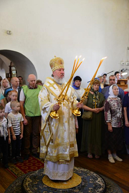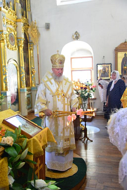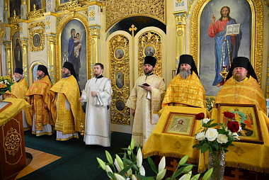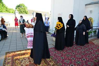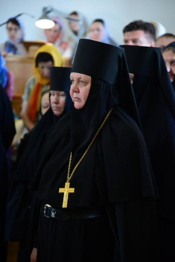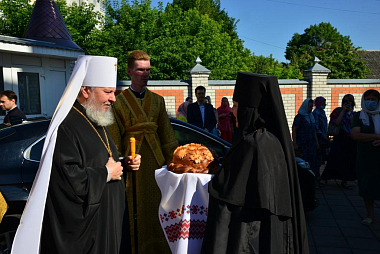 Затем митрополит Александр поздравил настоятельницу Петро-Павловского монастыря игумению Елену, духовенство и прихожан с торжеством.