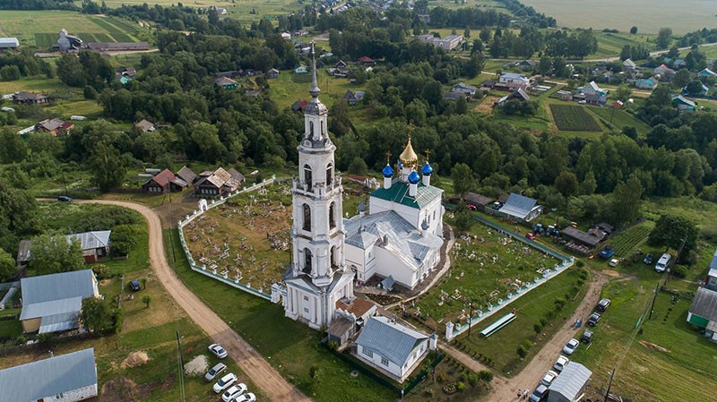 В середине XVIII столетия в истории тетеринского храма совершилось знаменательное событие – явление местночтимой чудотворной Боголюбской иконы Пресвятой Богородицы. Возвращавшийся в село из Нерехты безногий калека увидел на воде икону Царицы Небесной. Он добрался до села и рассказал жителям о явлении образа. Народ со священниками вышел к месту обретения иконы, и она была принесена в храм. Впоследствии от иконы стали происходить чудесные знамения. Во время смертоносного поветрия в конце XVIII века ее обносили с крестным ходом вокруг села, и эпидемия не причинила вреда тетеринским жителям. В 1805–1806 годах к Успенскому храму пристроили придел в честь Рождества Пресвятой Богородицы, а в 1815–1820 годах рядом с храмом воздвигли величественную колокольню по проекту итальянского архитектора Маричелли.