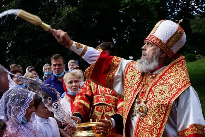 Затем духовник обители игумен Михаил отслужил молебен с водосвятием в храме в честь преподобного Никандра Псковского.