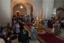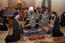 За богослужением прозвучали ирмосы Великого канона «Помощник и Покровитель» древним Знаменным распевом.