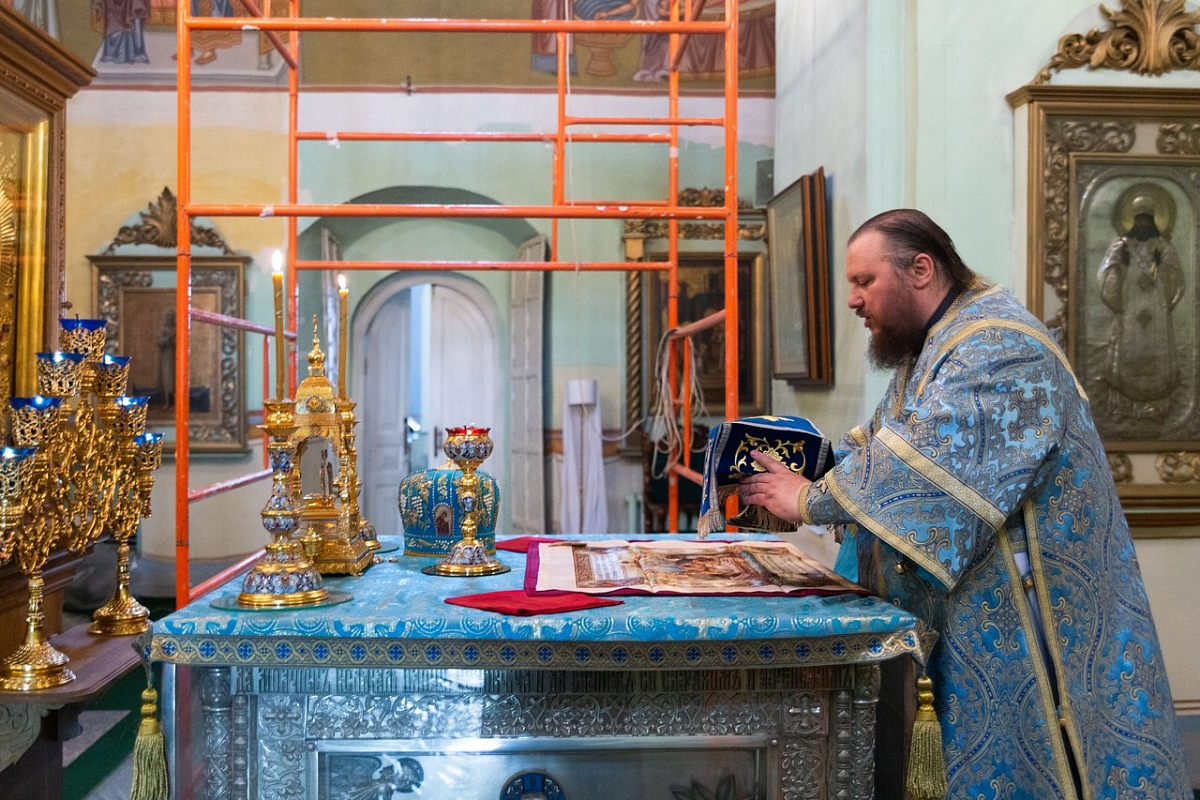 На сугубой ектении духовенством были вознесены молитвы против распространения коронавирусной инфекции, а также молитва Божией Матери о помощи медицинским работникам в больницах.