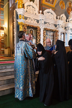 Затем митрополит Ферапонт поздравил духовенство собора и настоятельницу монастыря игумению Иннокентию с 30-летием с начала восстановления Богоявленско-Анастасиина монастыря, поблагодарив ее за усердные труды по возрождению святой обители.