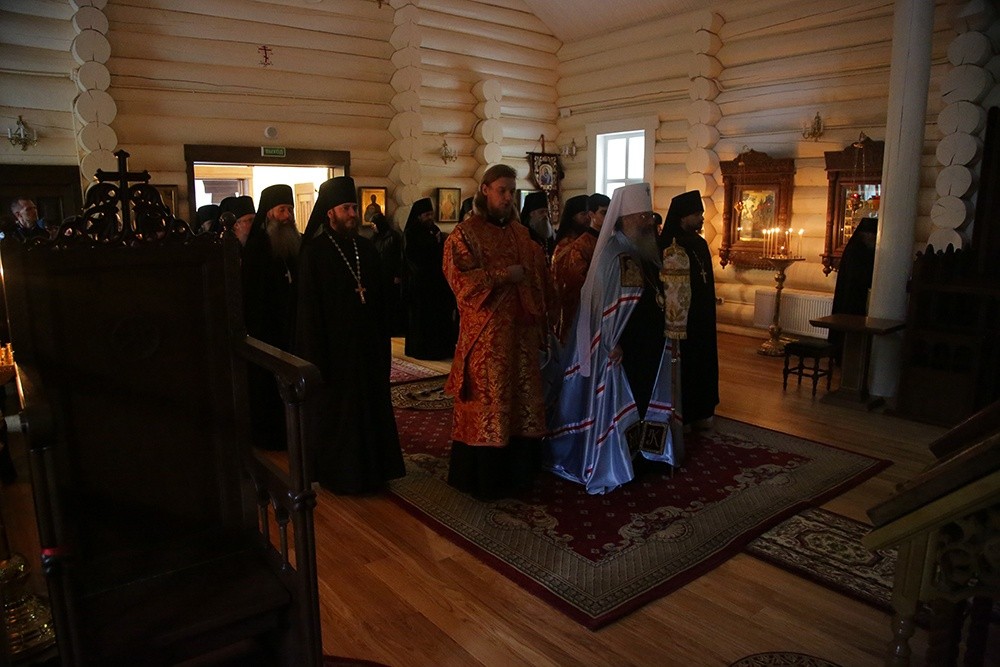 Его Высокопреосвященству сослужили: секретарь епархиального управления Екатеринбургской епархии иеромонах Кирилл (Корытко), исполняющий обязанности наместника Царской обители иеромонах Мелитон (Зыбин), братия обители в священном сане и клирики Екатеринбургской епархии.
