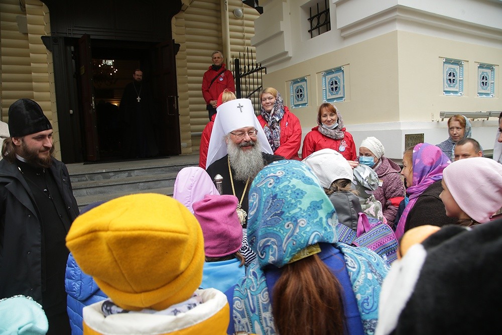 За богослужением молились дети – воспитанники воскресных и общеобразовательных школ, родители, педагоги, кадеты и представители молодежных приходских организаций патриотической направленности.