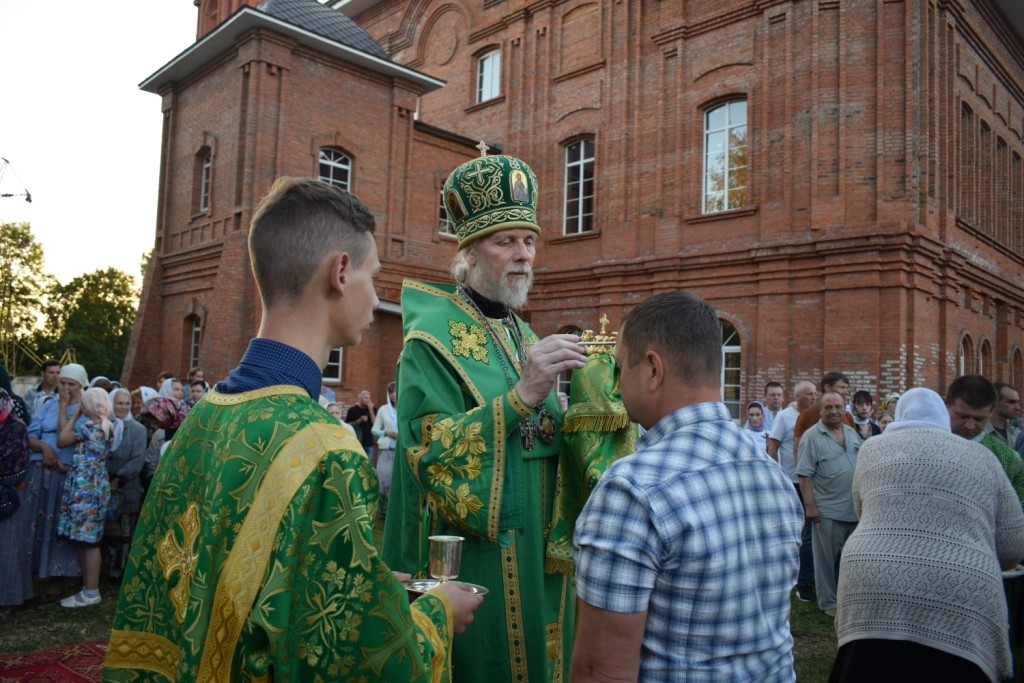 Его Высокопреосвященству сослужили архиепископ Песоченский и Юхновский Максимилиан, епископ Козельский и Людиновский Никита, епископ Тарусский Иосиф, наместник монастыря иеромонах Пафнутий (Архипов), благочинные храмов г. Калуги протоиерей Андрей Богомолов и иерей Константин Комаров, а также клирики Калужской, Козельской и Песоченской епархий.