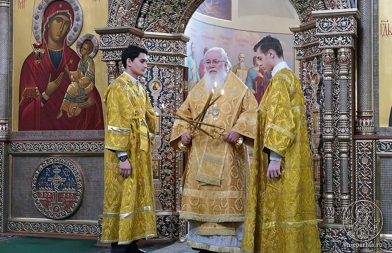 Его Высокопреосвященству сослужили наместник монастыря иеромонах Антоний (Битьмаев), насельники обители иеромонахи Борис (Григорьев), Евсевий (Голубев) и Пантелеимон (Шахтахтинский) и клирик Софийского собора иерей Николай Полозов.