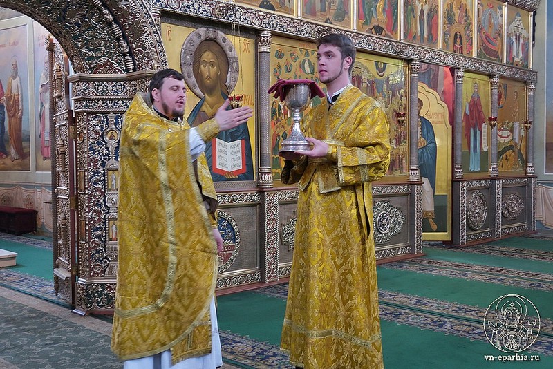 Богослужение сопровождалось пением мужского хора Новгородского духовного училища под управлением регента диакона Андрея Каурова.