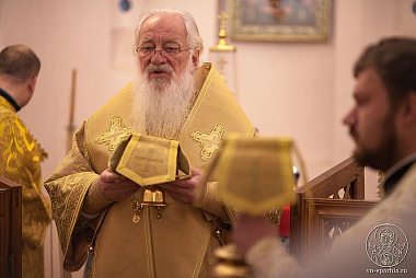 Его Высокопреосвященству сослужил насельник Свято-Юрьева монастыря иеромонах Сергий (Шардаков).