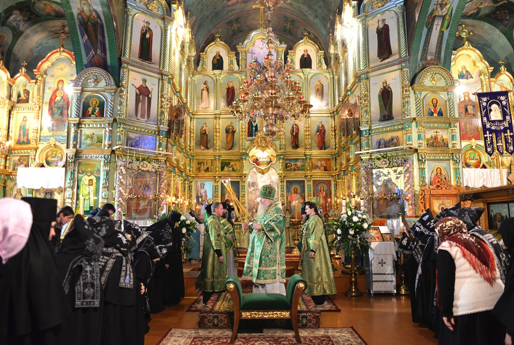 За богослужением молились настоятельница монастыря игумения Серафима (Селитренникова) с сестрами.