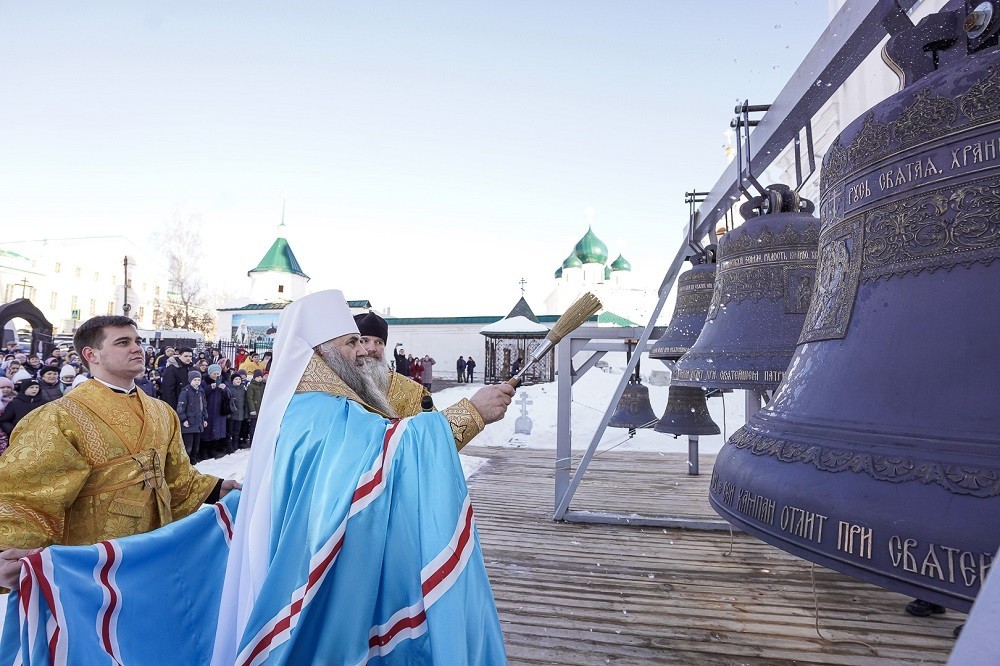 13 марта митрополит Нижегородский и Арзамасский Георгий совершил чин освящения колоколов для звонницы Спасо-Преображенского мужского монастыря в Арзамасе.