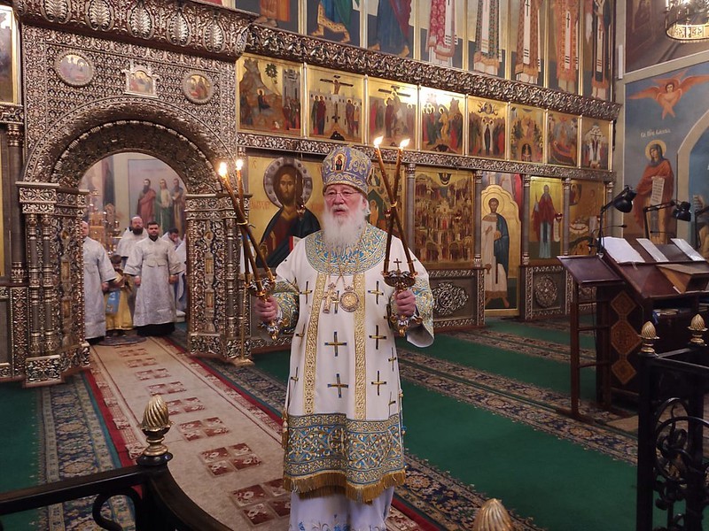 Его Высокопреосвященству сослужили: и.о. наместника Иверского монастыря иеромонах Антоний (Битьмаев); наместник Антониево-Леохновского монастыря архимандрит Митрофан (Письменский); насельники Иверского монастыря: иеромонах Евсевий (Голубев), иеромонах Борис (Григорьев), иеромонах Пантелеимон (Шахтахтинский); клирик Софийского собора иерей Николай Полозов.