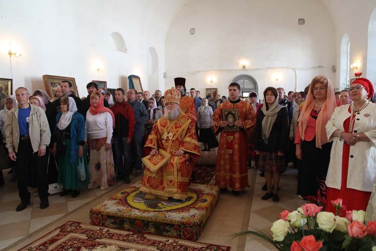 Перед началом Божественной литургии в монастырь была принесена крестным ходом Толгская икона Божией Матери. В течение недели святыня будет находиться в монастыре.