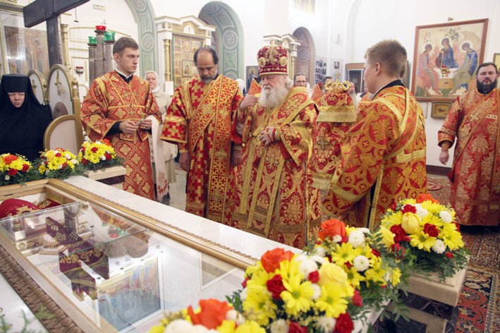 В этот день Божественную литургию в Казанском женском монастыре г. Ярославля, где пребывают мощи святителя, совершил митрополит Ярославский и Ростовский Пантелеимон в сослужении духовенства Ярославской епархии.