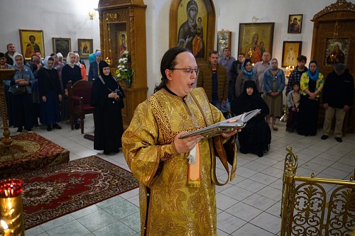 Песнопения Литургии исполнил хор сестер Спасо-Елеазаровского монастыря под управлением монахини Веры (Солениковой). За богослужением молились: митрополит Евсевий (Саввин), настоятельница обители игумения Татиана (Пашкова) с сестрами, прихожане и многочисленные паломники.