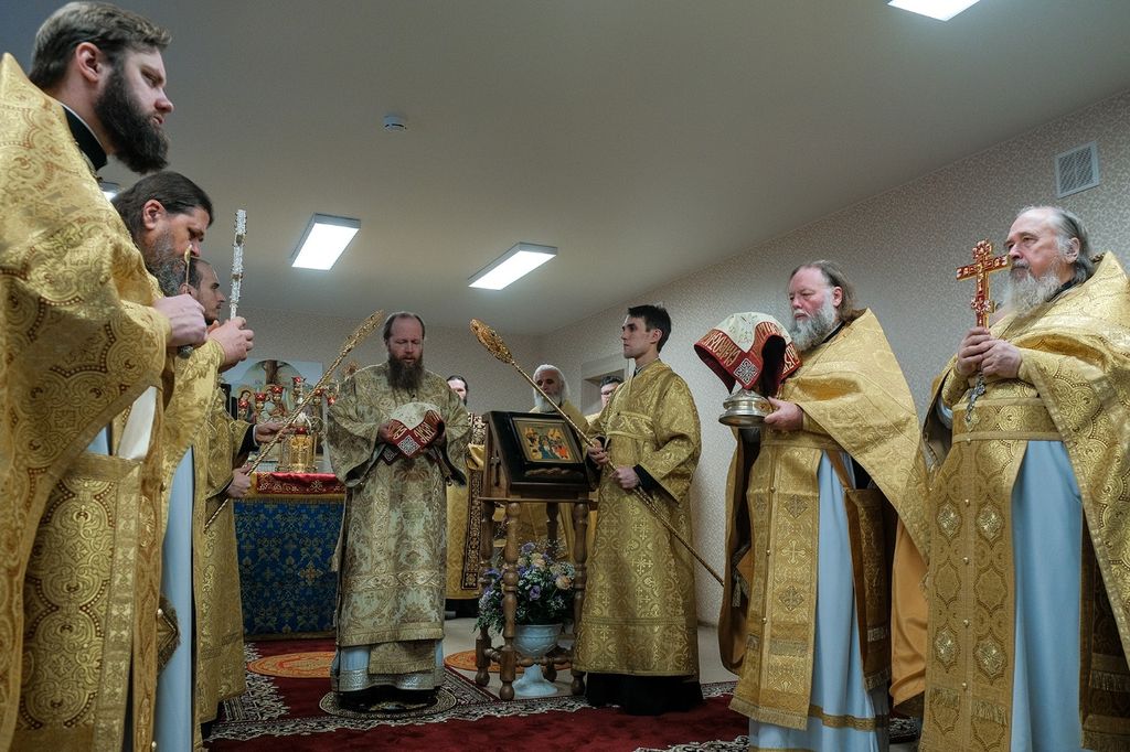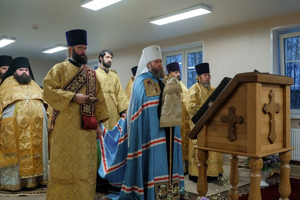 Его Высокопреосвященству сослужили епископ Ржевский и Торопецкий Адриан, епископ Бежецкий и Весьегонский Филарет, благочинный монастырей и монастырских подворий архимандрит Аркадий (Губанов), благочинный Осташковского округа протоиерей Димитрий Марковский, и.о. настоятеля (игумена) Новоторжского Борисо-Глебского мужского монастыря архимандрит Амфилохий (Желябовский), директор ТЕПСОШ имени свт. Тихона Задонского протоиерей Леонид Водолазский, духовенство епархии.