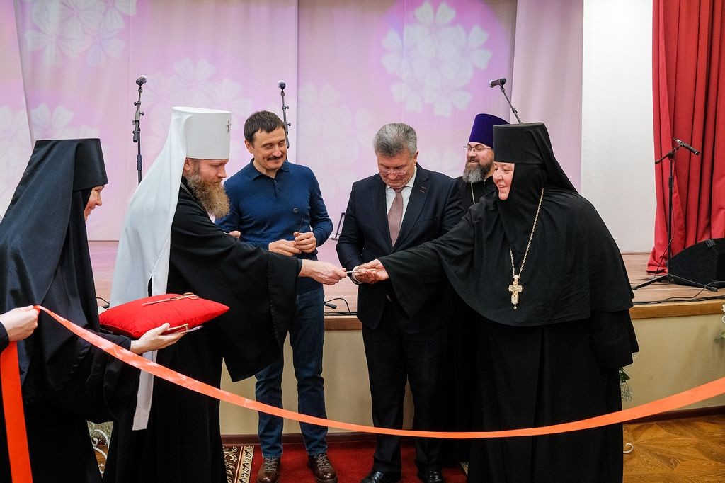 По окончании Литургии состоялось торжественное открытие и освящение новых трехэтажных корпусов социальной гостиницы «Дочки-матери». Чин освящения совершил митрополит Савва.
