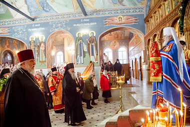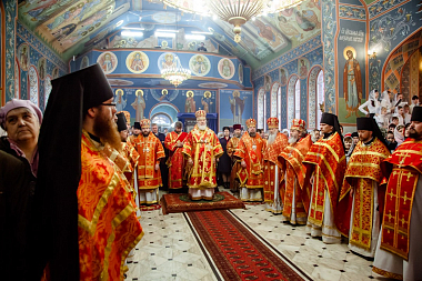 …Дорогие, возлюбленные во Христе собратья-владыки! Вы приложили много сил для созидания этого места. Вы, владыка Серафим, мужественно и мудро начинали строительство прихода в этом удаленном уголке города. Вы смогли в то непростое время организовать приход, который позднее стал монастырем. Вы, владыка Фома, а также ваши предшественники приложили силы, печать своего ума и деятельность рук по благоустройству и благоукрашению этой святой обители.