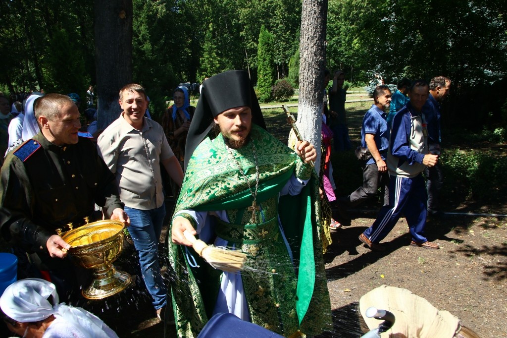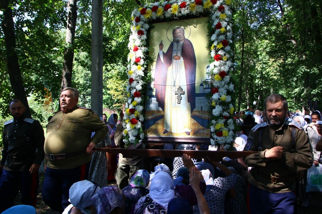 Молитвенно почтить память святого покровителя обители собрались представители казачества, многочисленные паломники, а также участники крестных ходов, совершившие шествие с 28 июля по 1 августа из городов Борисоглебской епархии в Серафимо-Саровский мужской монастырь.