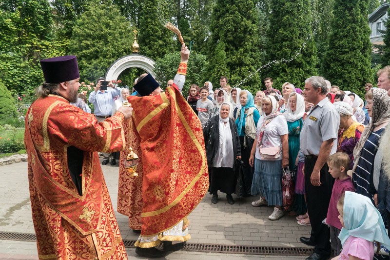 По отпусте Литургии был отслужен молебен небесному покровителю обители святителю Алексию и состоялся крестный ход вокруг соборного храма.
