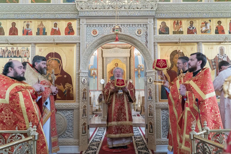 Соборный храм был заполнен множеством богомольцев, прибывших разделить в общей церковной молитве со своим архипастырем радость престольного праздника.