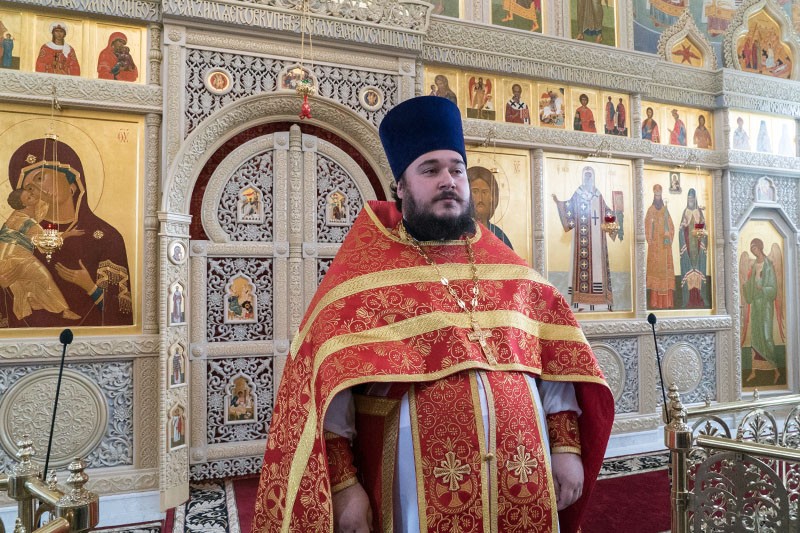 Перед Причастием проповедь о ныне прославляемом святителе Алексии произнес клирик Алексиевского собора иерей Димитрий Гречушкин.