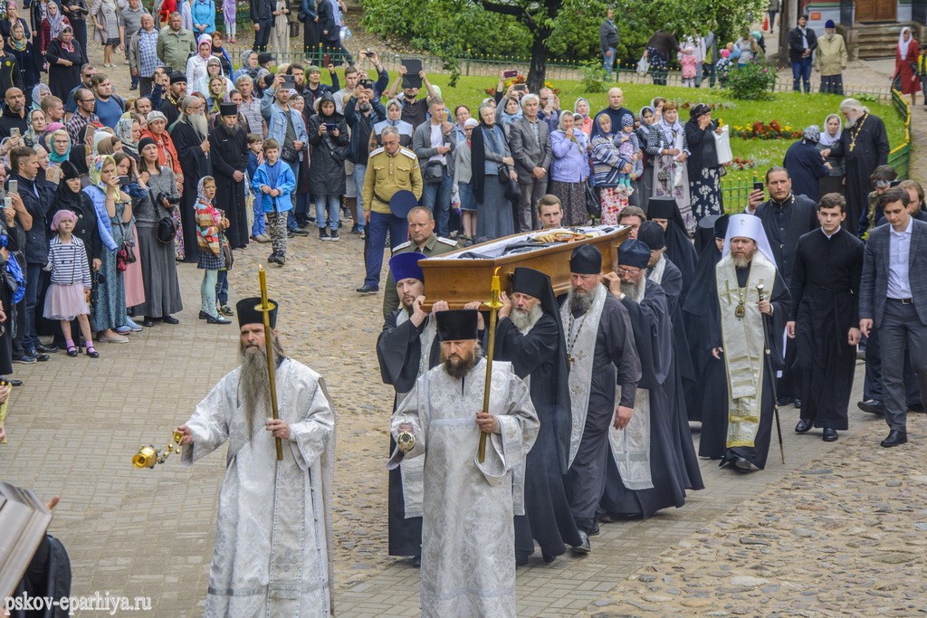 По окончании отпевания гроб с телом схиархимандрита Тихона был перевезен в Свято-Успенский Псково-Печерский монастырь. В обители псковский митрополит совершил чин погребения и заупокойную литию по новопреставленному старцу.