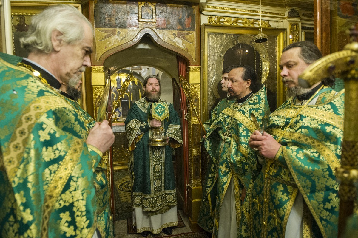 Его Высокопреосвященству сослужили духовенство епархии, братия обители и гости митрополии в священном сане.